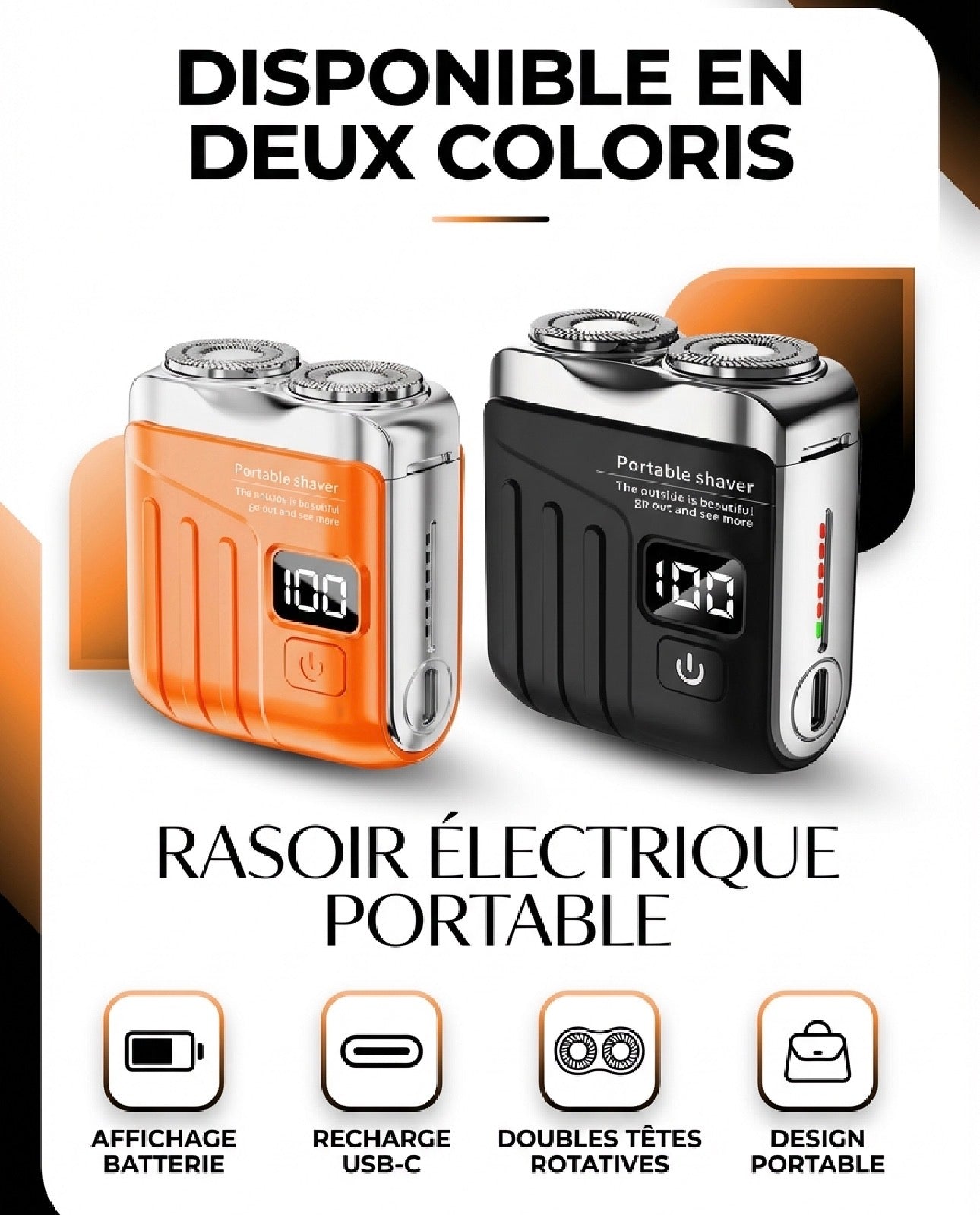 Le Mini Shaver est disponible en 2 coloris au choix : Orange, Noir, tous au même prix de 24,90 €. Vous pouvez ainsi choisir celui qui correspond le mieux à votre style.